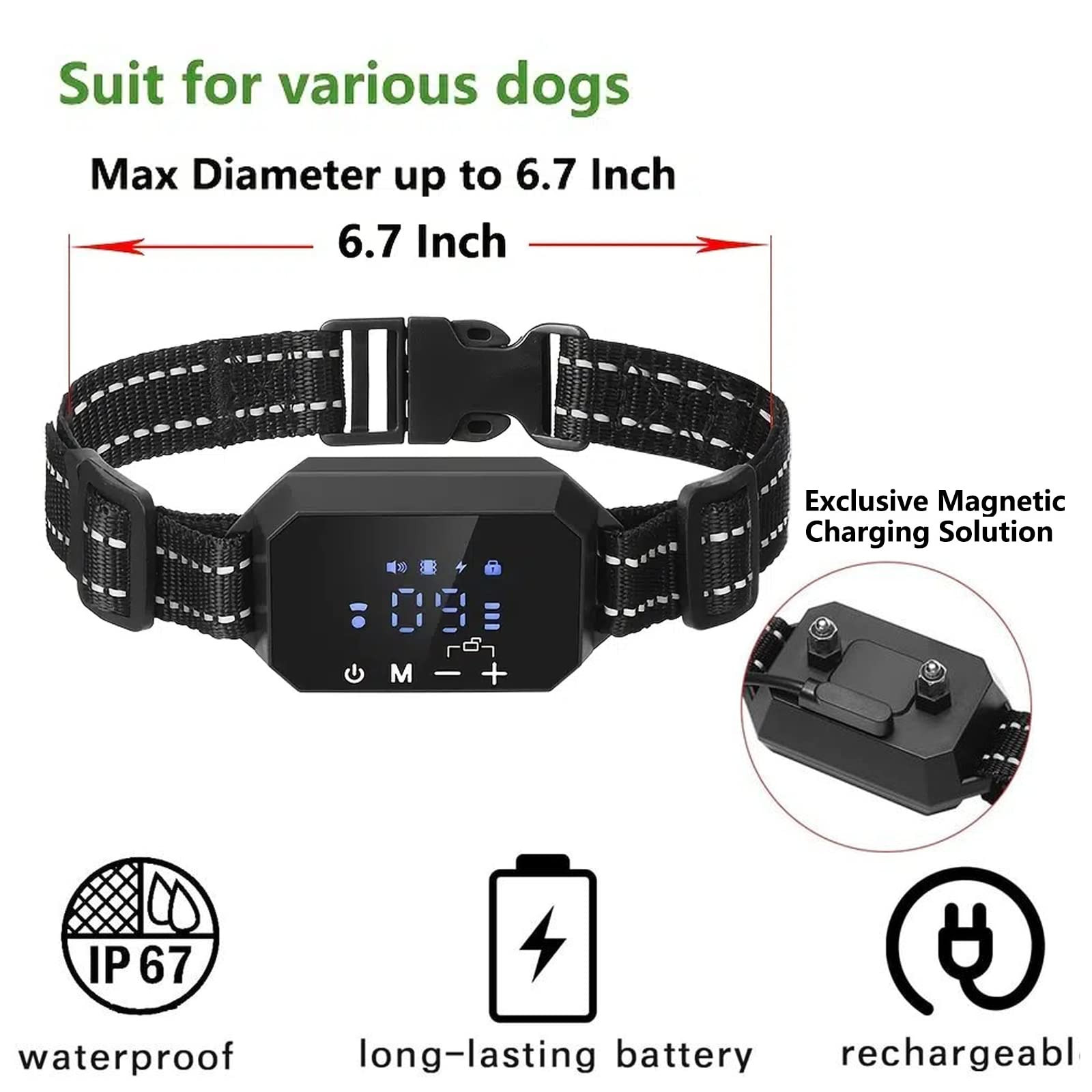 It has up to 1,000-foot restriction zones that can be changed, a waterproof collar with an IPX7 rating, and a rechargeable battery that can be used for up to 4 weeks on a single charge. The system is small and light, so it's great for camping, traveling, or visiting family and friends.